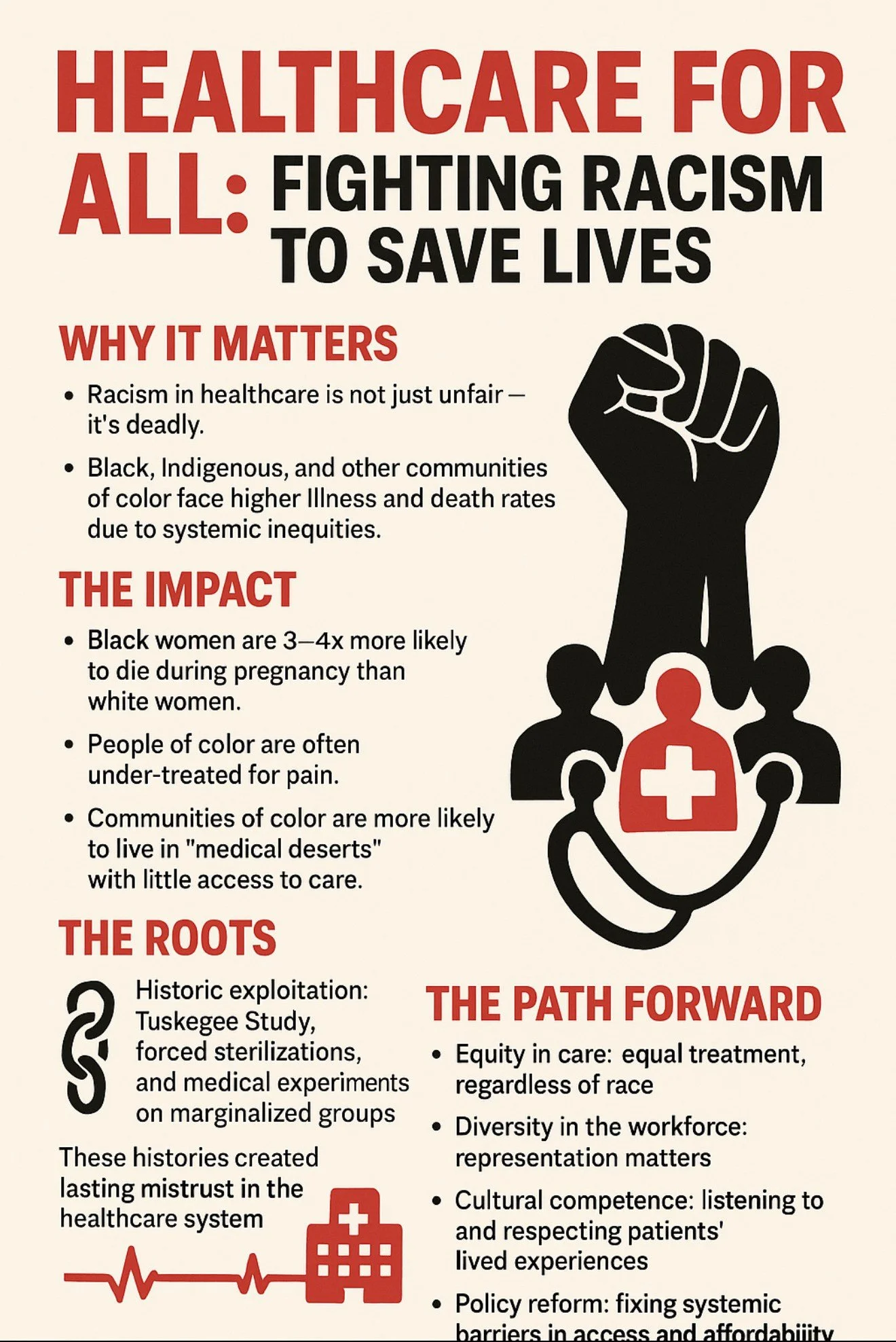 “Health should be a right- not a privilege. Yet systematic racism in healthcare means communities of color face higher risks, less access, and worse outcomes. Together, we can change this.”